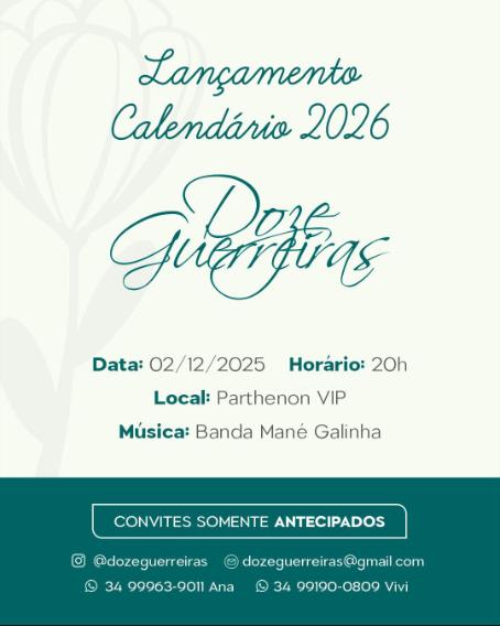 A empresária Valeska Ávila, uma das guerreiras do calendário 2026, contou que encontrou no grupo apoio emocional fundamental desde o diagnóstico. “Quando descobri o câncer, eu procurei referência, alguém que já tivesse passado por aquilo. As Doze Guerreiras me acolheram, me deram sensatez, realidade e presença. Hoje, poder ser essa referência para outras mulheres é uma forma de retribuir”, disse. Ela destacou ainda que participar das fotos do calendário representou uma virada de chave em sua própria trajetória. “Até então eu só pensava no que o câncer tinha me tirado. Depois daquele dia, passei a enxergar tudo o que ele me deu: presença, espiritualidade, prioridades e esse grupo maravilhoso”.