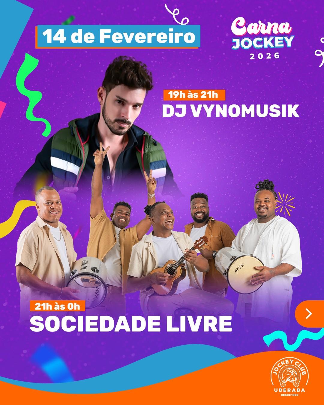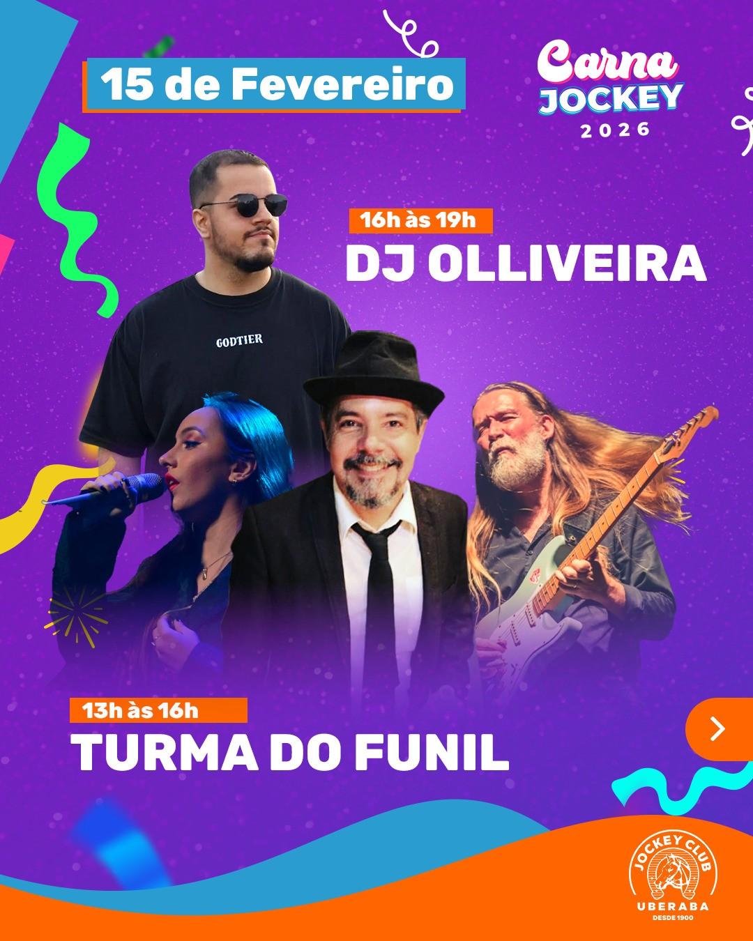 O Jockey Club Uberaba divulgou a programação do Carna Jockey 2026, que será realizado entre os dias 13 e 17 de fevereiro. A festa contará com cinco dias de shows, atividades voltadas ao público infantil e mudanças na estrutura do evento, além de entrada gratuita para os associados do clube.