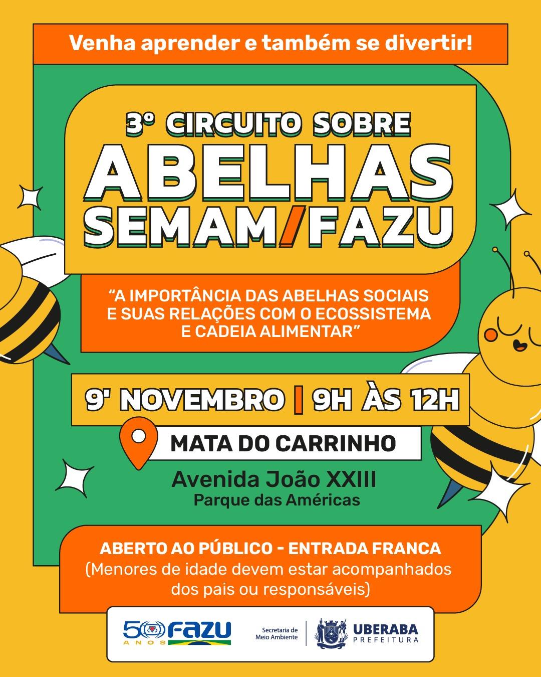 O evento é promovido em parceria entre a Secretaria de Meio Ambiente e as Faculdades Associadas de Uberaba (Fazu). A ação tem como foco mostrar à população a importância das abelhas nativas sem ferrão e sua contribuição essencial para o equilíbrio ambiental e a produção de alimentos.