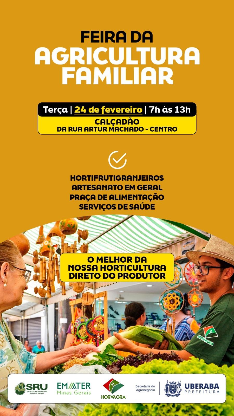 Nesta terça-feira (24), o Calçadão da Rua Artur Machado, no Centro de Uberaba, recebe mais uma edição da Feira da Agricultura Familiar, a segunda realizada neste mês de fevereiro.