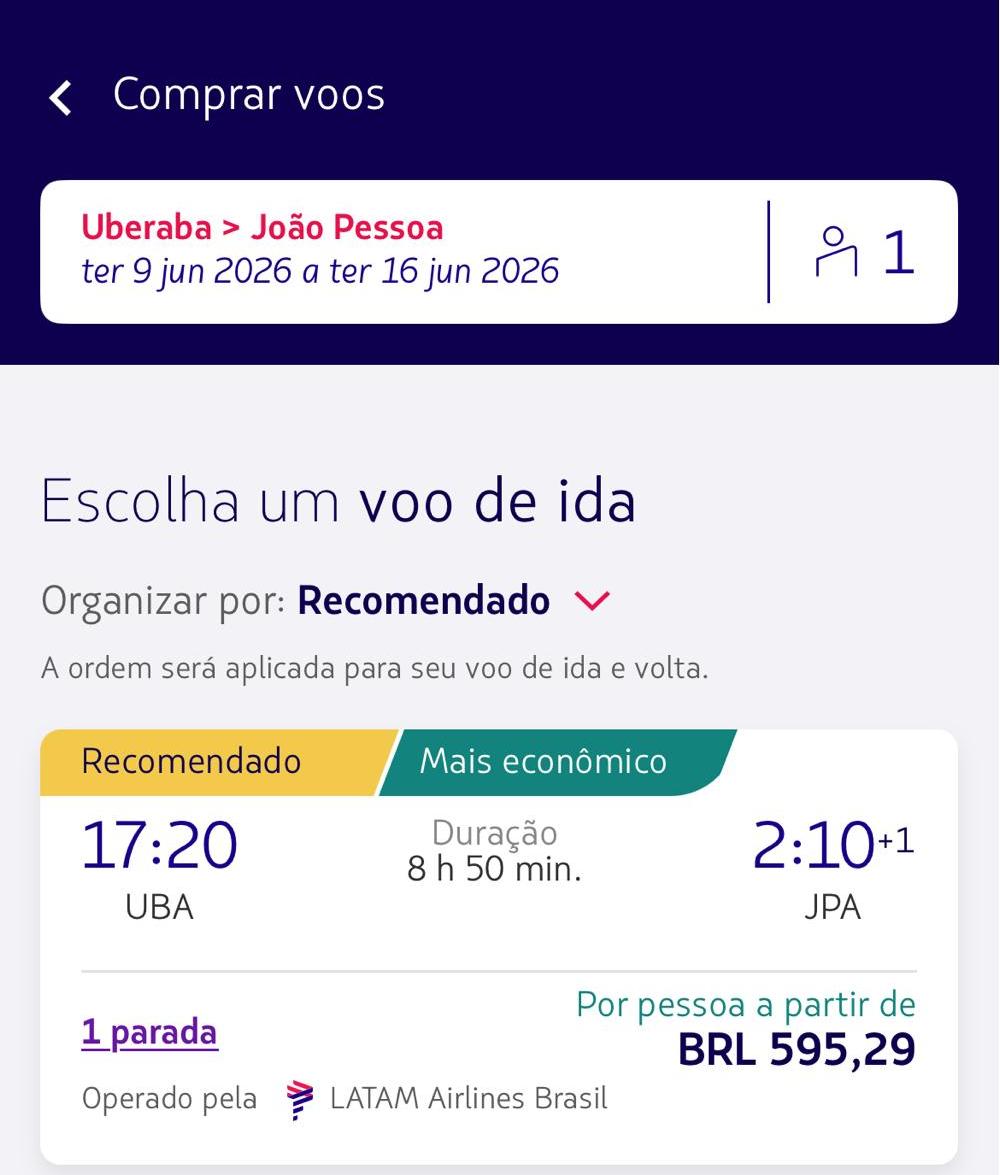 Mesmo destinos mais distantes ou turísticos aparecem em patamares que ajudam a sustentar o apelo comercial da operação. Porto Seguro foi encontrado a partir de R$ 561 e João Pessoa a partir de R$ 595. Em alguns casos, o sistema mostra também opções mais longas, com mais conexões e preços superiores, o que reforça que os valores variam de acordo com disponibilidade, tempo de viagem e composição do itinerário.