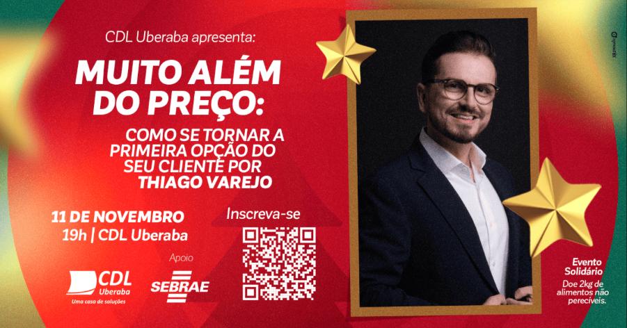 O especialista em varejo Thiago Varejo ministra, na terça-feira (11), às 19h, a palestra “Muito além do preço: como se tornar a primeira opção do seu cliente”, no auditório da Câmara dos Dirigentes Lojistas (CDL) de Uberaba. O evento conta com apoio do Sebrae e propõe refletir sobre práticas que valorizam o atendimento e o relacionamento com o cliente, especialmente neste período de vendas natalinas.