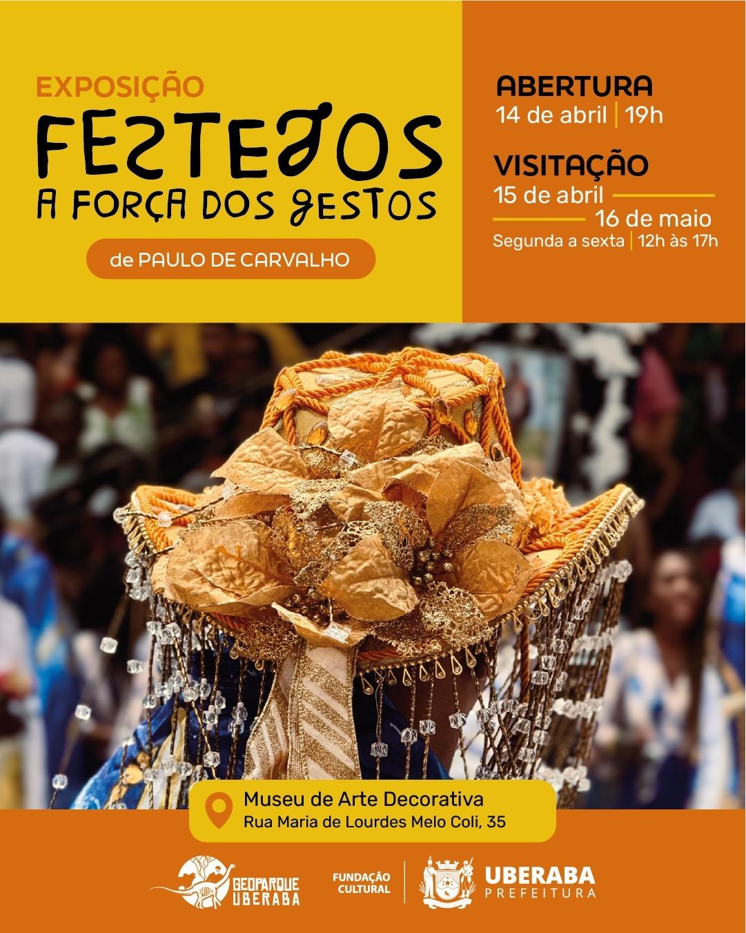 O Museu de Arte Decorativa (Mada), em Uberaba, recebe a partir desta terça-feira (14) a exposição “Festejos – A Força dos Gestos”, do artista Paulo de Carvalho. A abertura está marcada para as 19h.