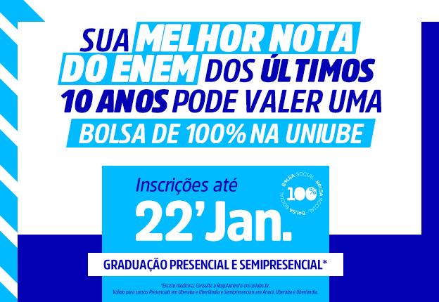 A Uniube está com inscrições abertas para o bolsa social 100% Enem, destinada ao ingresso no primeiro semestre de 2026 nos cursos de graduação presenciais e semipresenciais da Universidade. Os interessados podem se inscrever até dia 22 de janeiro, pelo site da Uniube. A classificação será feita com base na nota do Enem dos anos de 2017 a 2025.