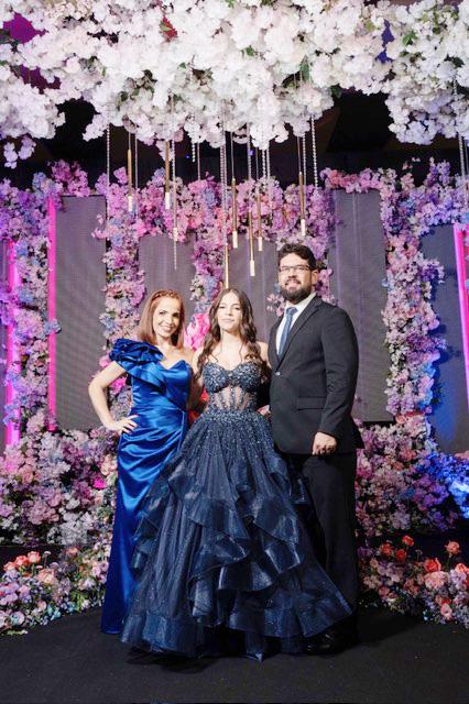 Luz, alegria e muita emoção definiram o último final de semana em Uberaba, com a deslumbrante festa de 15 anos da jovem Amanda Santiago. O Centro de Eventos da ABCZ transformou-se em um cenário de conto de fadas para celebrar a passagem de Amanda para uma nova e promissora fase da vida. O brilho da felicidade era evidente no olhar da debutante, que encantou a todos em sua aparição, trajando um vestido magnífico com aplicações de cristais. Os pais de Amanda, Keula Avelar Borges da Costa Santiago e Daniel Santiago, eram a imagem da satisfação ao ver a filha brilhar. A família, aliás, marcou presença com muito carinho, incluindo a avó materna Dona Creusa, os avós paternos Dona Maria Madela e Sr. Bolivar, e os tios Kennedy, Renato e Simone. O momento da valsa foi ainda mais especial com a presença do amigo Gabriel, que atuou como príncipe da noite. A organização do evento foi impecável, com o Mestre de Cerimônia Thiago Gomes conduzindo a noite com maestria. A pista de dança ferveu ao som do DJ Fabiano e da voz potente de Mel Mendes. A decoração, em sua totalidade, encantou a todos, abrangendo desde a imponente entrada até os delicados arranjos das mesas de doces. Os registros visuais da noite ficaram por conta do talentoso fotógrafo Alysson Oliveira e do cinegrafista Rodrigo Soares, garantindo que cada sorriso e cada emoção fossem eternizados. O coreógrafo Pedro Guimarães – que tem se destacado nas festas de 15 anos - preparou a debutante para os passos que marcaram a noite. Foi, sem dúvida, uma festa memorável, que ficará gravada na memória de todos os presentes como um marco de beleza, alegria e celebração da vida de Amanda Santiago. Parabéns à família pela organização impecável e à Amanda por sua noite de brilho!