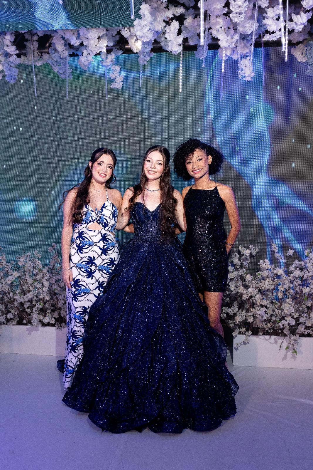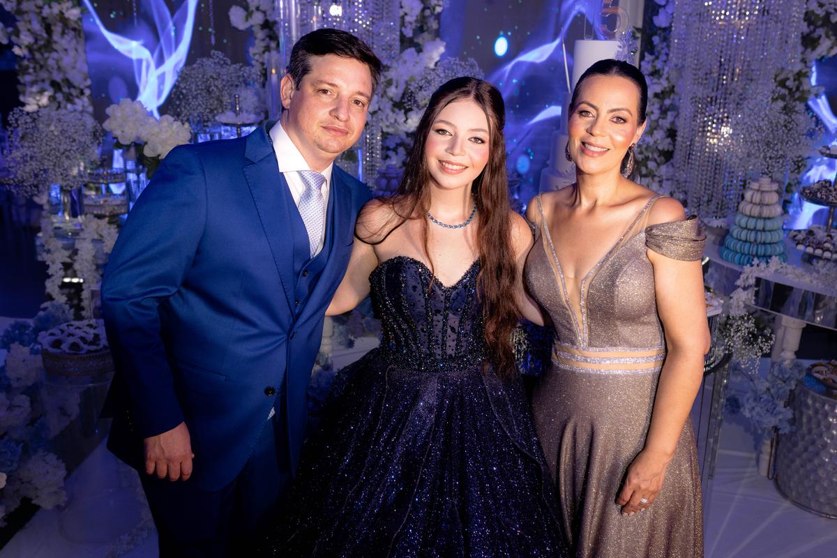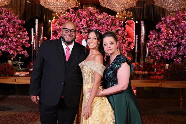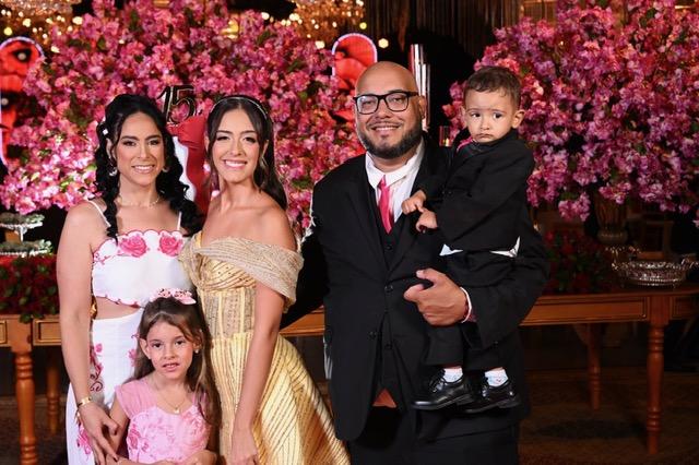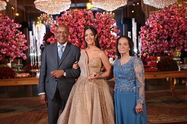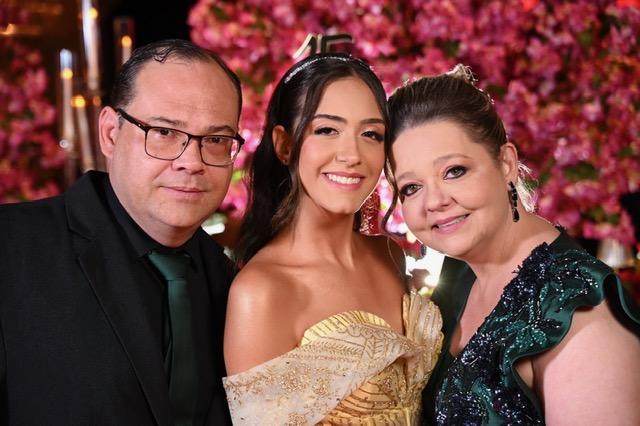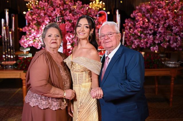 Ana Beatriz Paixão da Fonseca Andrade celebrou seus 15 anos em uma festa primorosa, cuidadosamente orquestrada pela cerimonialista Sheron Cantarelli. Ao lado de seus pais, Janaina Martins Paixão Andrade e Lucas Eduardo da Fonseca Andrade, e dos avós, João Francisco Menezes de Andrade e Mirza Teia da Fonseca, a noite foi um verdadeiro espetáculo de carinho e alegria. O ponto alto da noite foi a valsa, onde Ana Beatriz dançou com o pai, o avô João Francisco, o primo João Pedro Lourenço e, em um momento emocionante, com a mãe Janaina Martins. O príncipe Pietro Gabriel também marcou presença. As homenagens tocaram a todos: Anna Luiza Dabner cantou, os pais exibiram uma mensagem especial no telão, e as amigas Ana Sofia Desllane e Kyvia Yane leram textos emocionantes. Após a valsa, o pai presenteou Ana Beatriz com um lindo anel, que complementou o conjunto de joias (colar, pulseira e brincos) entregue mais cedo. Uma noite singular, celebrando a vida e os sonhos da debutante.