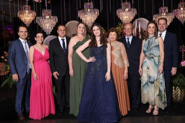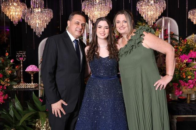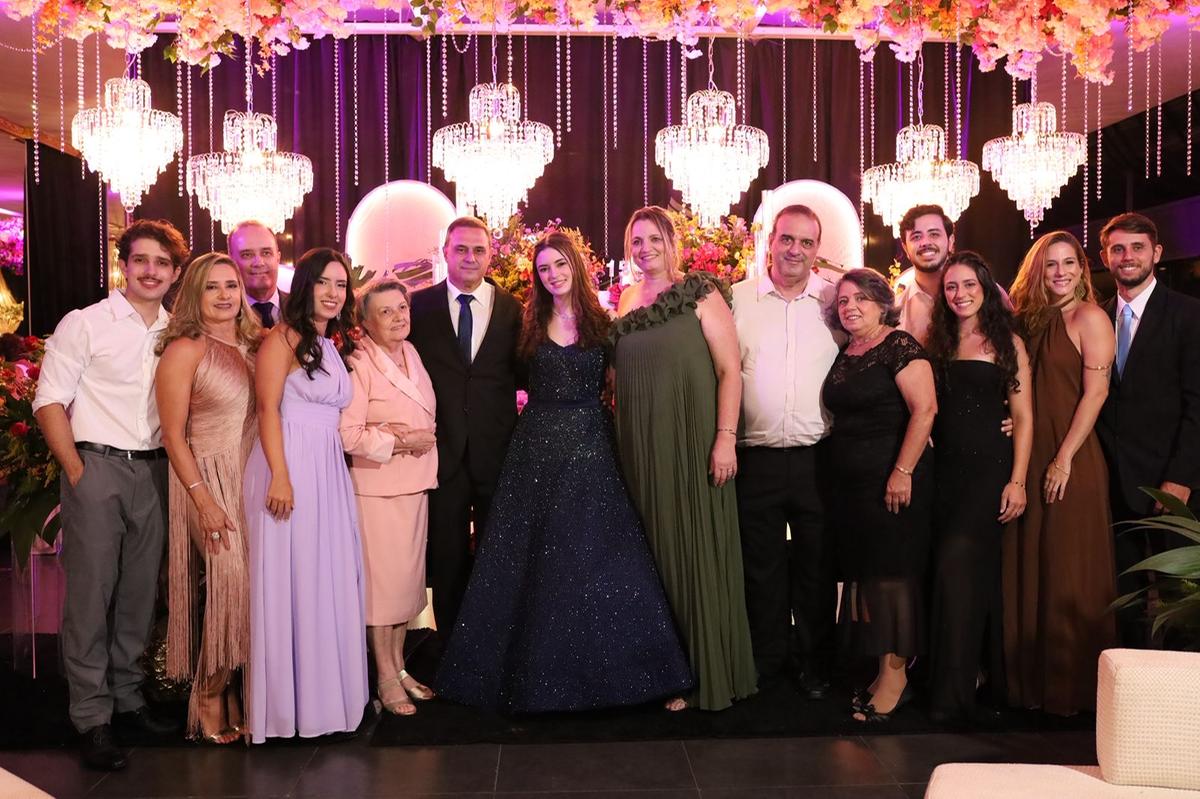 A última sexta-feira do mês de janeiro foi palco de uma noite memorável com a deslumbrante celebração dos 15 anos de Júlia Dagrava Laterza. Filha querida de Fernanda Dagrava Laterza e Gustavo Laterza de Deus, Júlia brilhou intensamente em sua festa, que aconteceu em um elegante salão de festas da terrinha. Cada detalhe da celebração foi cuidadosamente orquestrado para refletir a beleza e a importância do momento. A decoração, a cargo de Cenário Nobre – pelas mãos de Gustavo e Flávio Castro Fernandes – transformou o ambiente em um cenário de sonho, complementado pelo totem Box Cabine, que proporcionou momentos de diversão e registros fotográficos. O cerimonial foi conduzido com maestria por Tati Botelho, enquanto os momentos especiais foram eternizados pelas lentes da fotógrafa Babi Magela. A pista de dança ferveu com a animação dos convidados e contou com a coreografia assinada por Welber Frazão, garantindo o ritmo da noite. Um dos pontos altos da festa foi a valsa, onde Júlia teve a honra de dançar com seu pai, com seu avô Adão, com seu padrinho Garibalde Laterza, e com seu príncipe, o primo Pedro, em um momento de pura emoção e tradição. Júlia estava radiante em seu vestido digno de uma princesa, evidenciando toda a sua beleza e a alegria de seus 15 anos. A presença dos avós maternos, Dona Ana Terezinha e Sr. Adão, e da avó paterna, Dona Ivanilda, adicionou um toque especial de carinho e afeto à celebração. Foi uma noite verdadeiramente inesquecível, marcando a transição de Júlia para uma nova e promissora fase de sua vida. Desejamos à jovem debutante um futuro repleto de luz, sucesso e muitas felicidades!