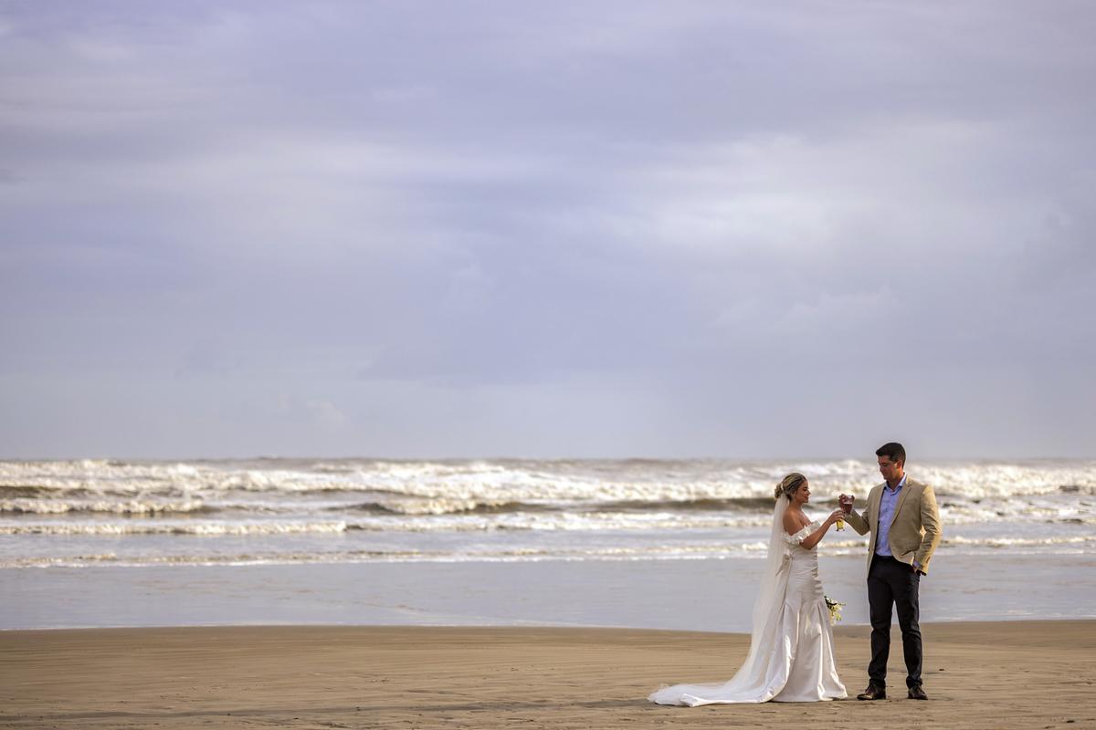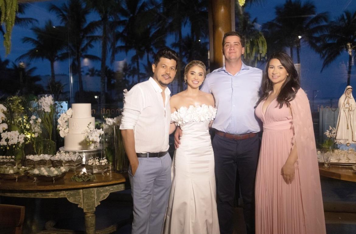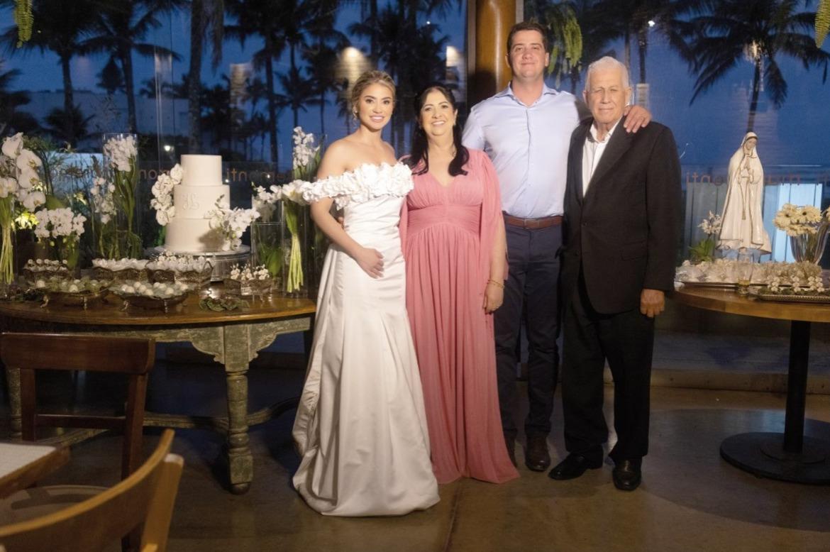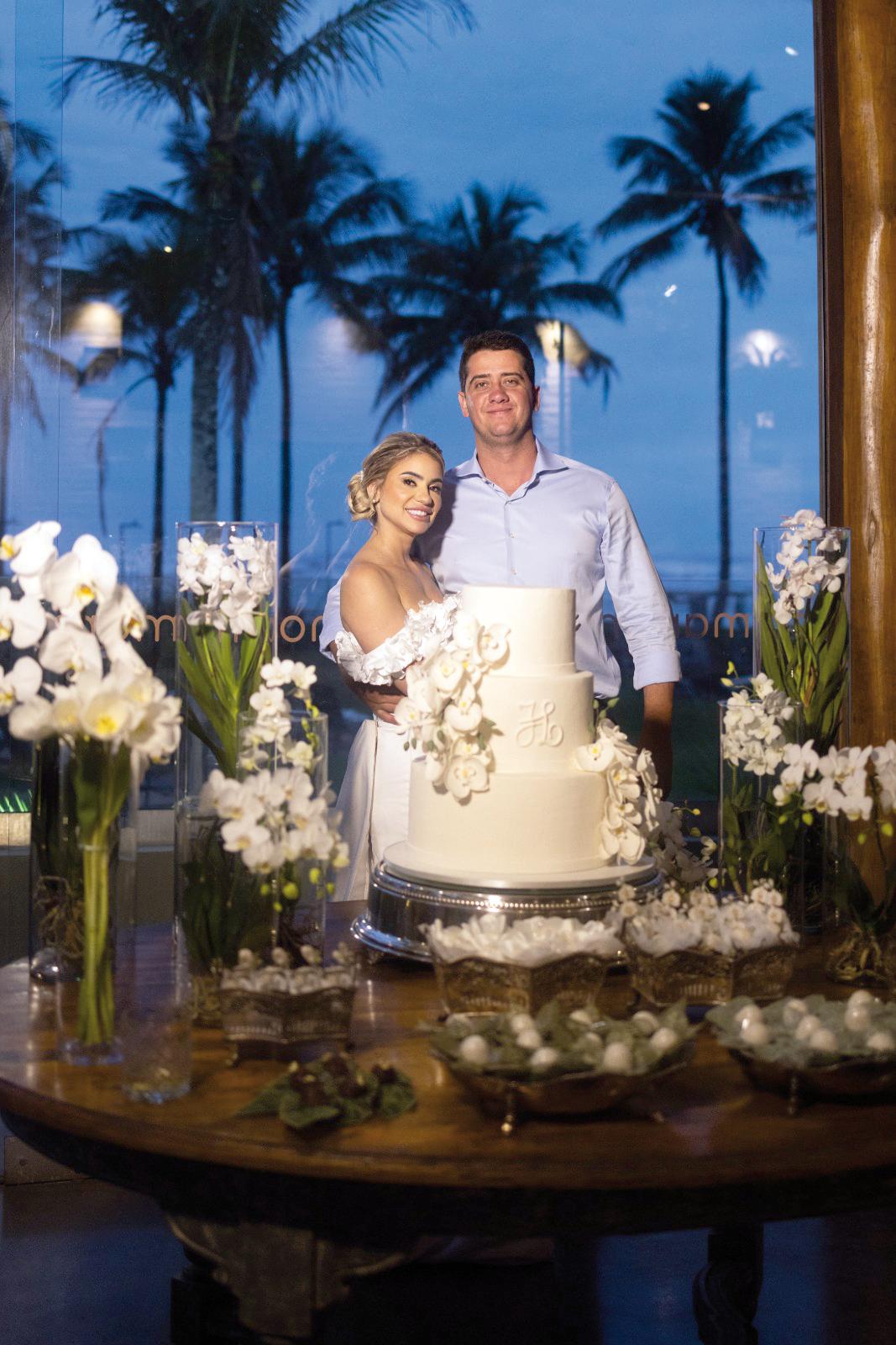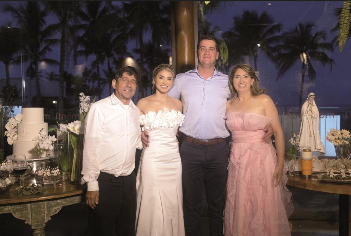 Dias depois, o destino levou o casal e suas famílias até o litoral de São Paulo, em Riviera de São Lourenço, para o segundo e inesquecível capítulo dessa história. À beira-mar, com o som das ondas e o pôr do sol ao fundo, aconteceu uma celebração organizada pela própria noiva, Jéssica, que cuidou pessoalmente de cada detalhe. O cenário era encantador: um restaurante de frente para o mar, preparado com uma decoração leve e elegante, integrando o azul do oceano com o branco e o dourado da celebração.