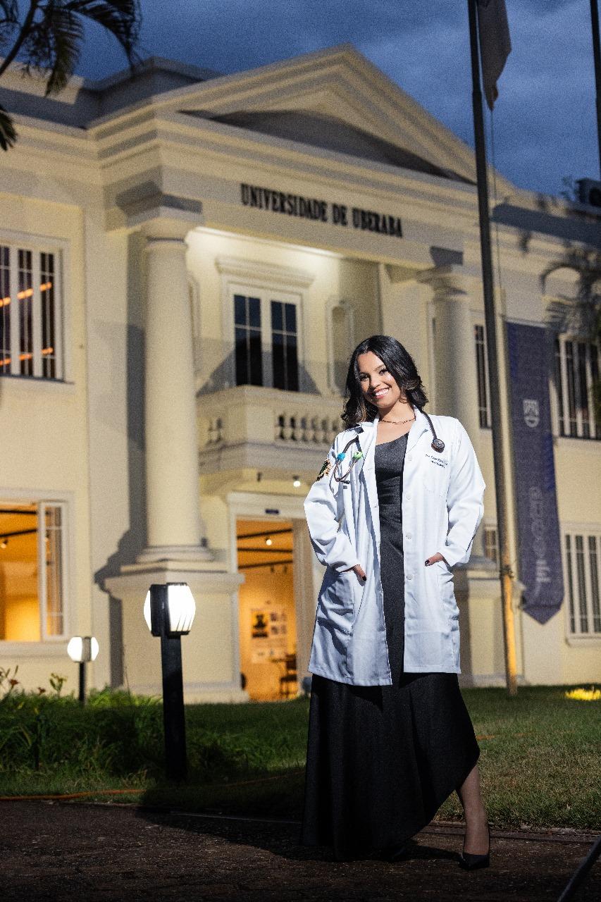 A talentosa Dra. Maria Eduarda Firmino celebra sua formatura em Fisioterapia, registrando esta conquista na Uniube, no Hospital Mário Palmério e em um ensaio cheio de personalidade no estúdio. Entre fotos com vestido, terninho e jaleco, ela mostrou toda sua versatilidade e alegria pela profissão que escolheu.