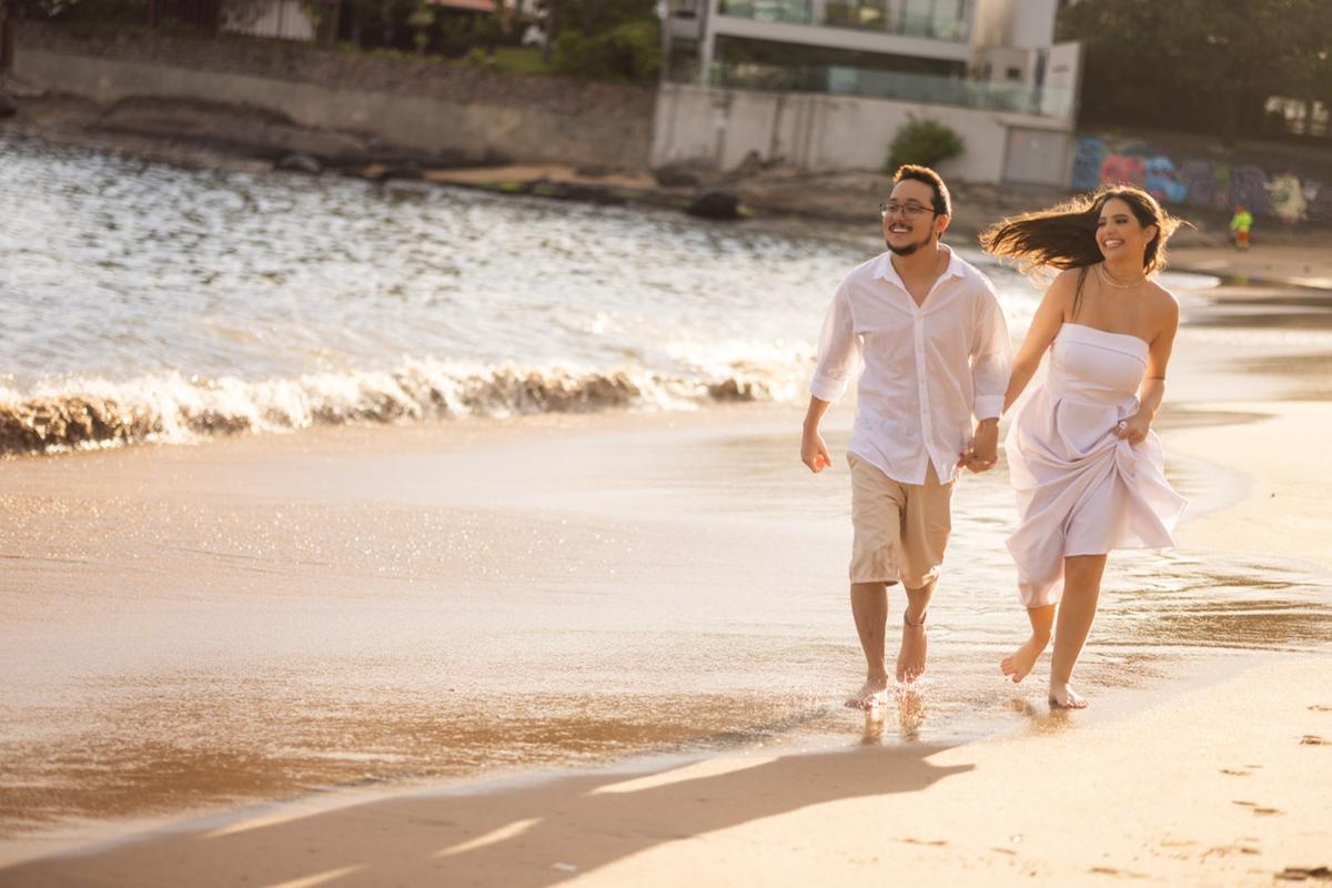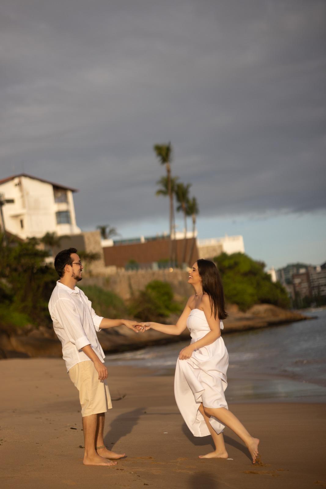 Amanda e Leonardo estão vivendo a doce expectativa do casamento, que acontecerá daqui a alguns meses, aqui em Uberaba — ao ar livre, do jeito que eles sempre sonharam: leve, elegante e cheio de significado.Mas antes do grande dia, eles escolheram viver algo ainda mais especial. Fomos até Vitória, terra da família da Amanda, onde moram seus avós e onde tantas memórias foram construídas. E que escolha perfeita.Começamos o ensaio ao nascer do sol. A luz suave tocando o rosto dos dois, o silêncio da manhã e aquela conexão que não precisa de direção, só de sentimento. Foram imagens delicadas, intensas e verdadeiras.Depois seguimos para uma praia paradisíaca — praticamente deserta — onde o mar, o vento e o céu pareciam fazer parte do cenário preparado exclusivamente para eles. Ali, entre risadas, pés na areia e abraços demorados, registramos a essência do amor leve que os une. E para fechar com ainda mais significado, fomos até um mosteiro na região. Um cenário imponente, silencioso, cheio de espiritualidade. O contraste entre a arquitetura histórica e a cumplicidade do casal resultou em um ensaio simplesmente maravilhoso — daqueles que emocionam. Agora, fica a expectativa pelo grande dia em Uberaba. Se o ensaio já foi assim, cheio de beleza, verdade e conexão, o casamento promete ser inesquecível. Amanda e Leonardo, que privilégio contar essa história com vocês. Que venha o “sim” — estaremos prontos para eternizar cada segundo.
