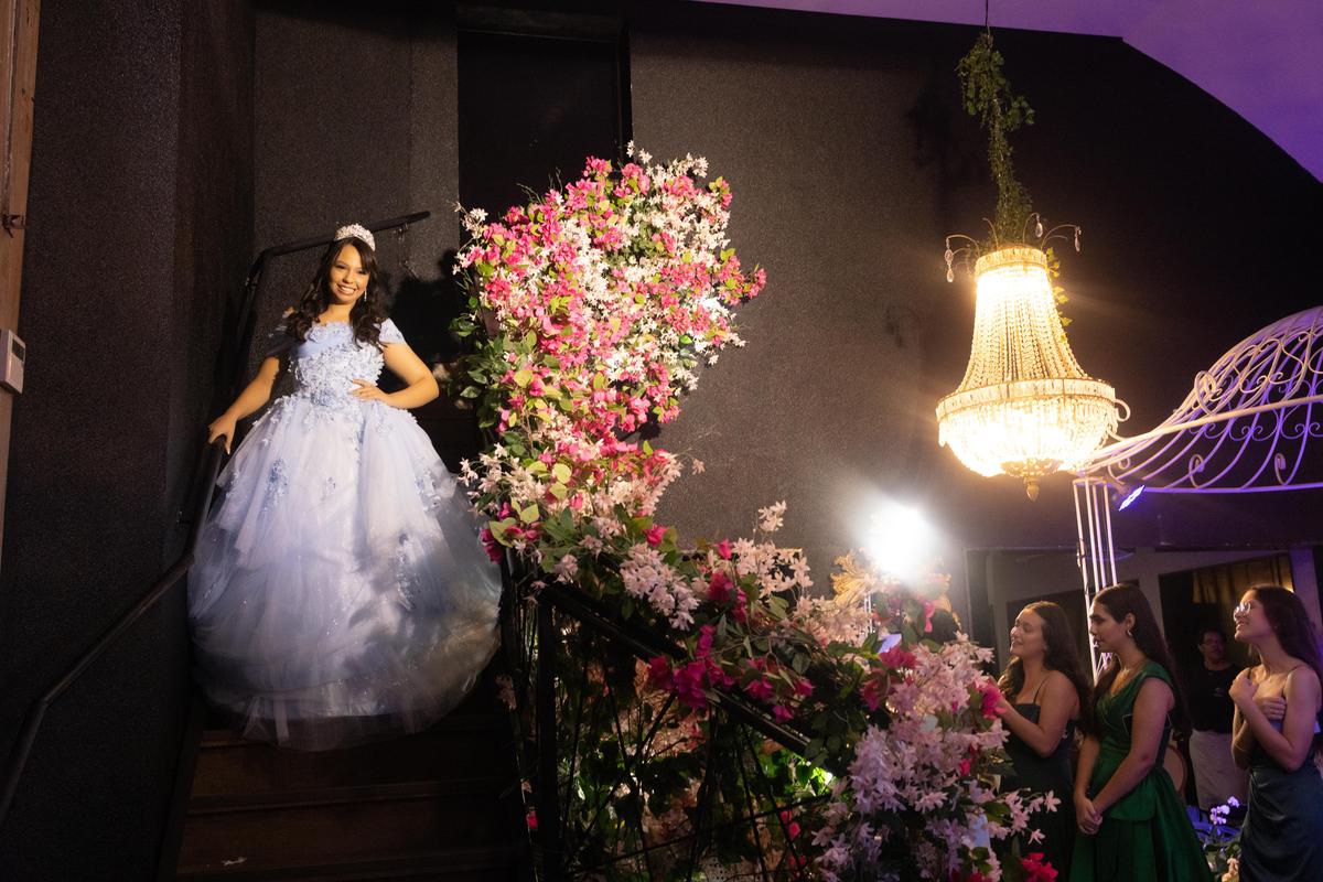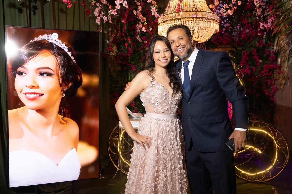 Samuel, por sua vez, foi o perfeito cavalheiro dessa história. Atento, presente e emocionado, conduziu a filha com ternura e orgulho. Seu gesto na troca do sapato — símbolo da passagem da menina para a jovem mulher — emocionou a todos e marcou a noite como um dos momentos mais belos da celebração.