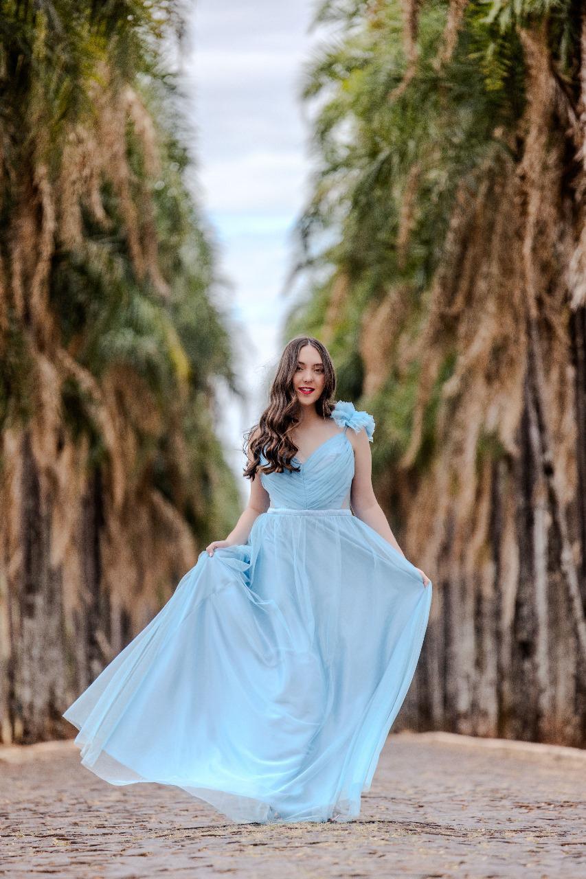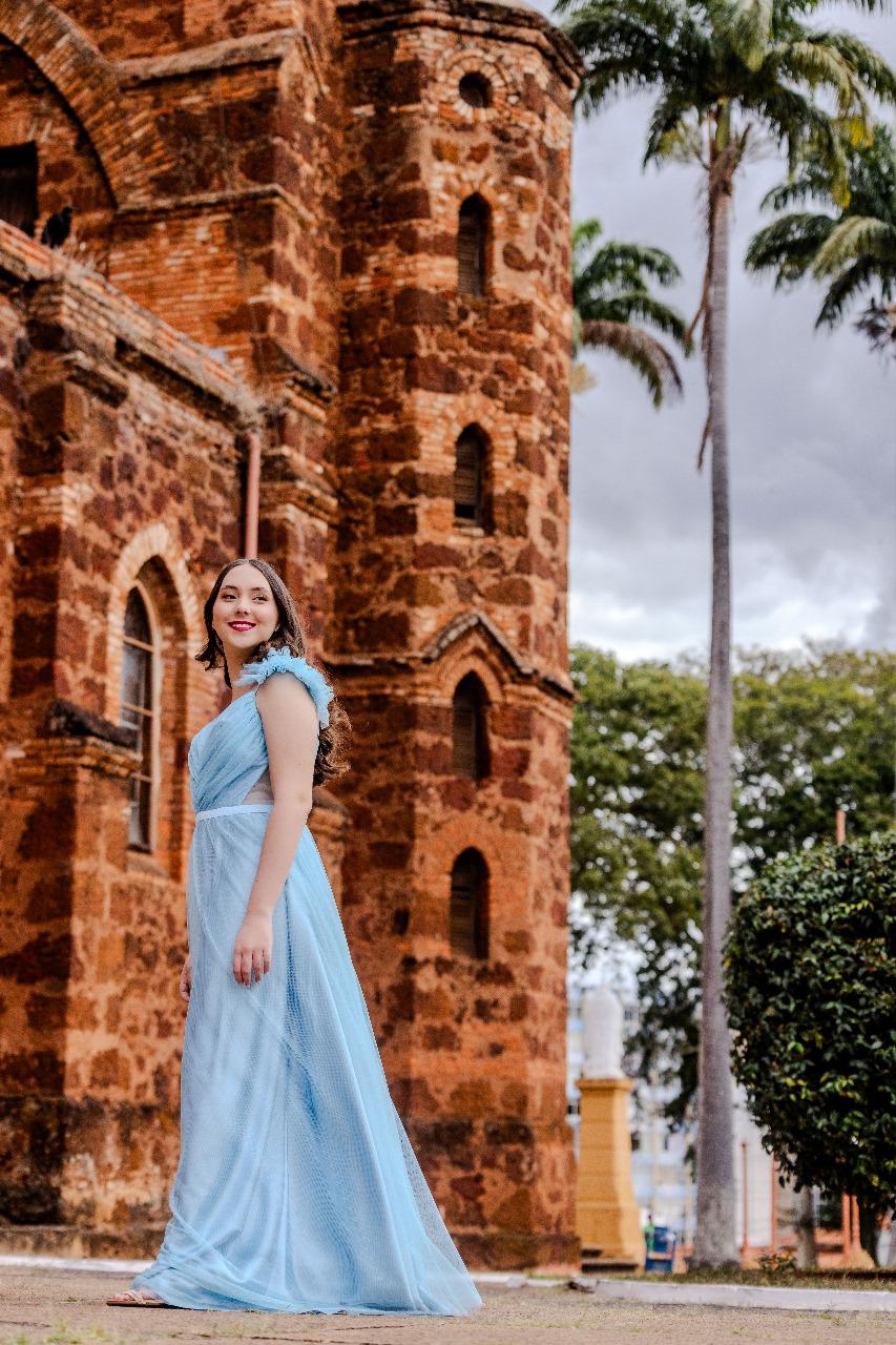 Depois, ela surgiu deslumbrante com o vestido clássico, posando na porta da Igreja São Domingos e também em uma charmosa casa histórica de Uberaba, trazendo um toque de tradição e elegância ao ensaio. Na segunda parte do book, seguimos para o Hotel Fazenda Paineiras, um cenário repleto de verde, luz e sombras perfeitas. Lá, o clima rústico e natural valorizou ainda mais a beleza e a personalidade da debutante. Luísa se soltou completamente — subiu em árvores, rodou, brincou e até se jogou na piscina, de vestido e tudo, vivendo intensamente cada momento.