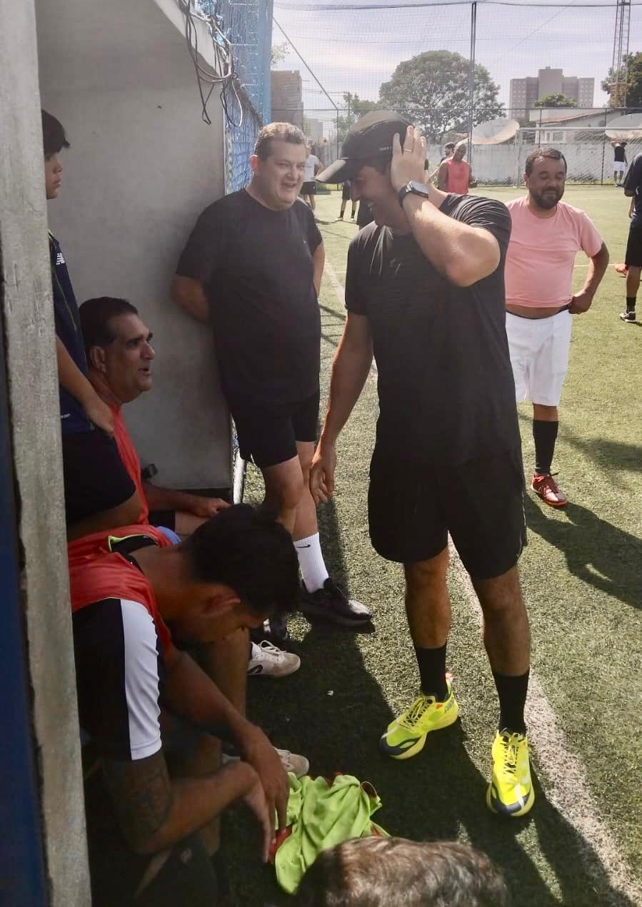Em que pese o presidente estadual do PSD dizer que o partido vai focar na dobradinha Rochelle e Ismar, o presidente da Câmara continua sendo visto em público com o também candidato Franco Cartafina (PP). No sábado, no campo de futebol do Independente, os dois estavam lá em altos papos, na maior animação, sob os olhares dos vereadores Almir Silva e Samuel Pereira. O assunto certamente não foi sobre o Big Brother Brasil... Confira a foto abaixo: