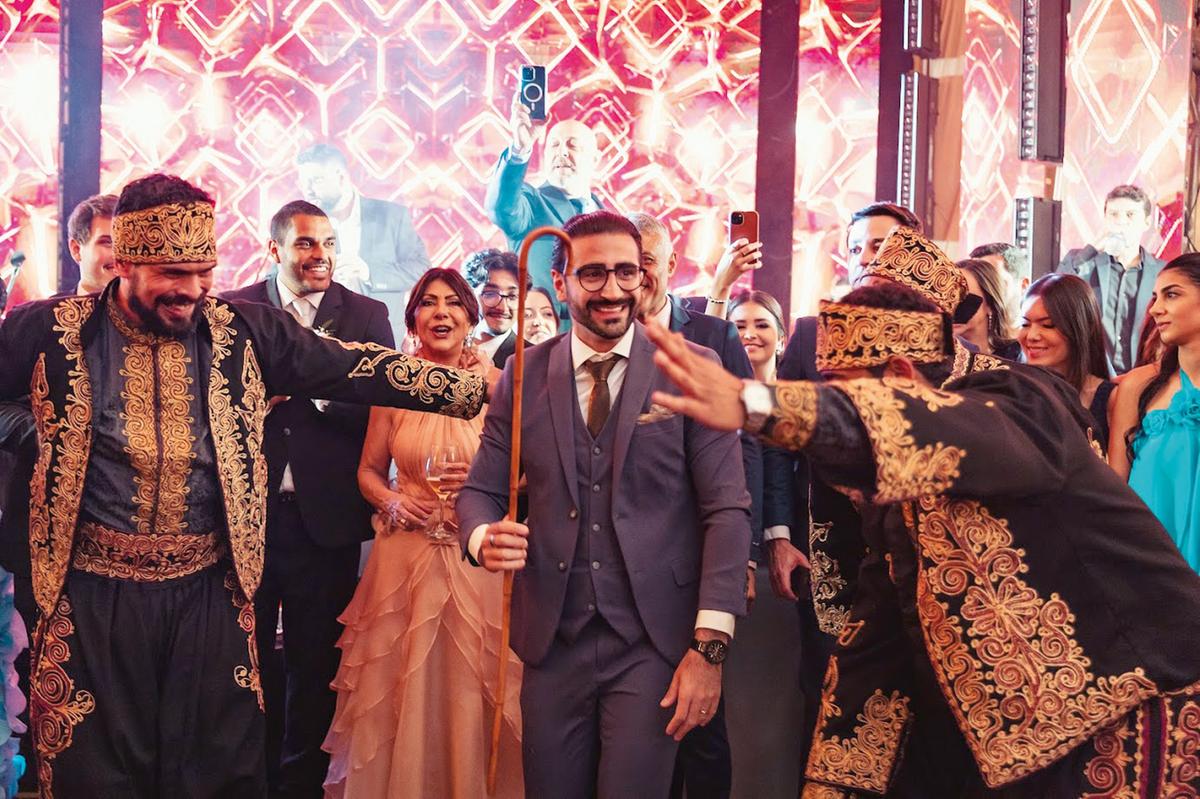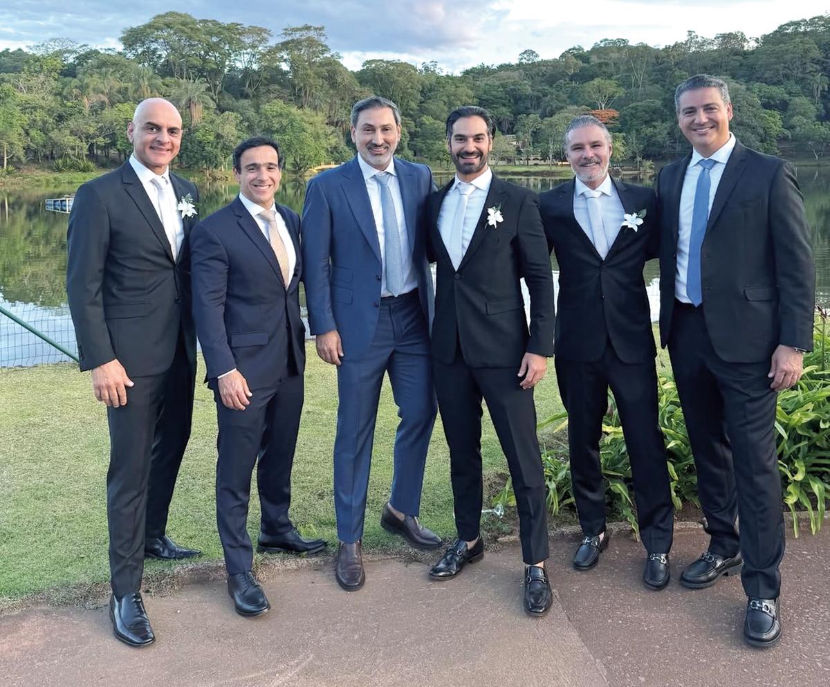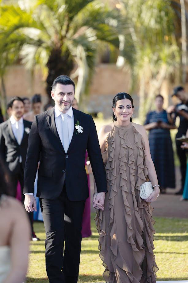 O último final de semana foi marcado por um dos casamentos mais suntuosos do ano, realizado no luxuoso Grande Hotel de Araxá. Os festejos começaram na sexta-feira, dia 24, com um animado pré-wedding no tradicional Scot Bar, reunindo familiares e amigos em clima de descontração. No sábado, 25 de outubro, foi o grande dia do enlace de Caio Ayache Rocha e Eulália Carolina El Rahim Ayache, que escolheram o majestoso hotel como cenário para celebrar o amor. A cerimônia aconteceu ao cair da tarde, no belíssimo jardim em frente ao lago, proporcionando um pôr do sol inesquecível. De famílias de origem árabe, os noivos emocionaram a todos com uma celebração repleta de tradição, beleza e alegria. Após o “sim”, Caio e Eulália brindaram com seus convidados no jardim e, em seguida, recepcionaram-nos em uma festa deslumbrante no salão de jantar, ricamente decorado com rosas, frutas, candelabros e lustres, compondo um ambiente de requinte e puro encantamento.