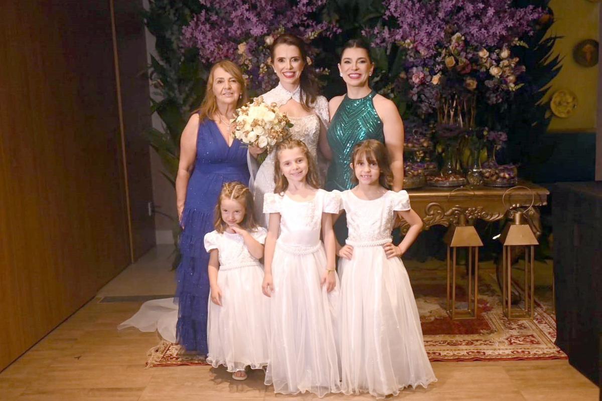 A noiva com a mãe, Maria Aparecida, a irmã, Julia Ferreira, Anne e Luise Cervato, filhas da noiva e Helena Ferreira, sobrinha da noiva (Foto/Arquivo pessoal)
