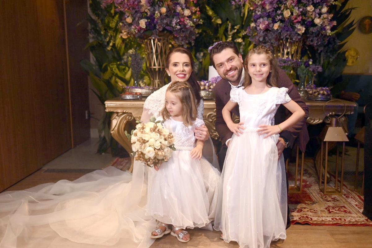 Maria Paula Marcondes de Paula e Mateus Moraes Henrique disseram sim em cerimônia emocionante, na foto com a pequena Linda (Foto/Renata Pinheiro)