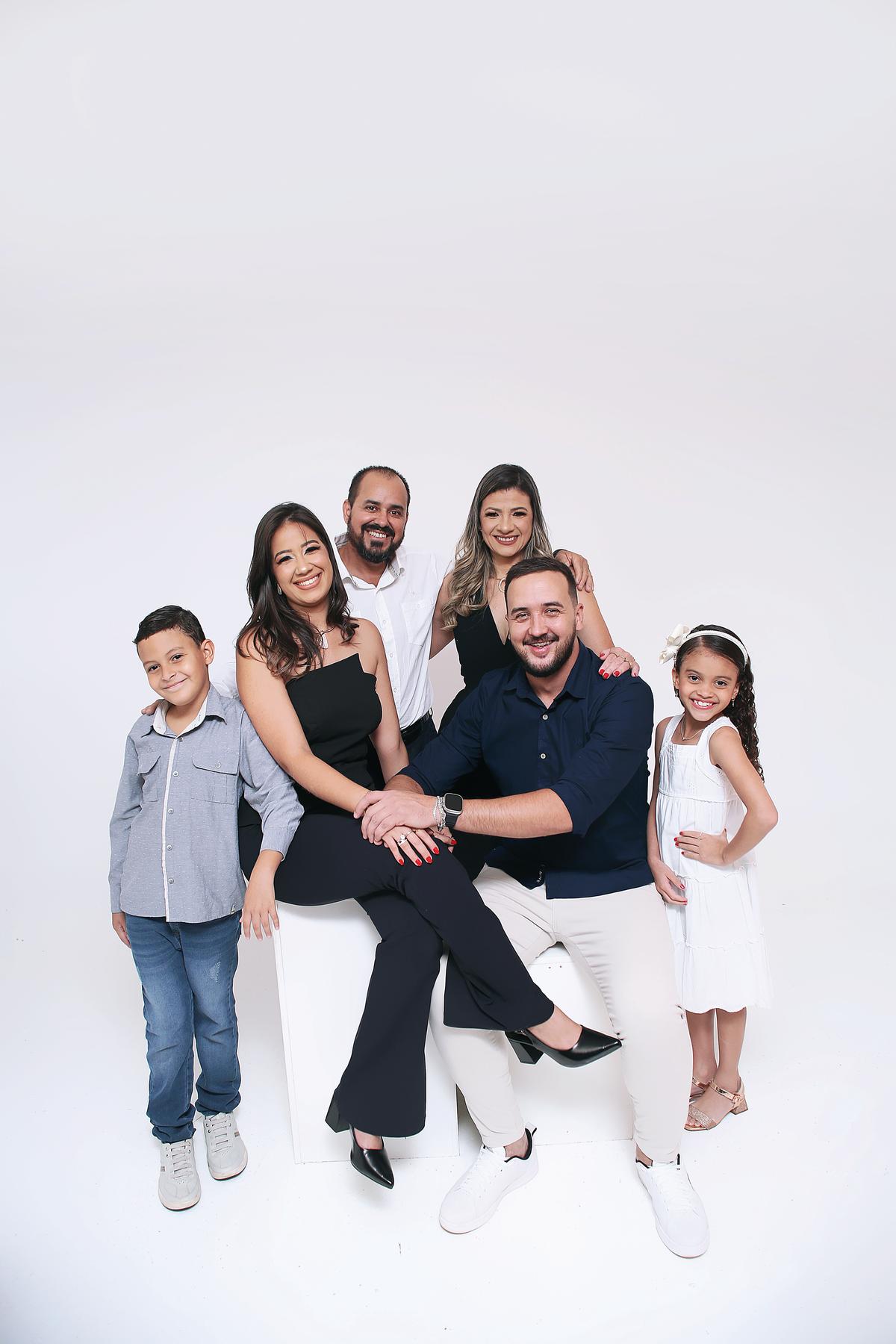 Maria Clara e Diego com a mãe dele, Silvania Rodrigues Naves Fernandes, o padrasto, Juarez dos Reis Fernandes e a irmã, Nicolle Rodrigues Naves Fernandes (Foto/Alysson Oliveira)