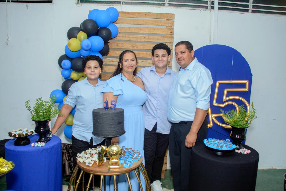 O aniversariante com os pais, Fernando Félix Rodrigues de Oliveira e Rosemary Lopes de Paula e o irmão, Benicio Paula de Oliveira (Foto/Ian Produções)
