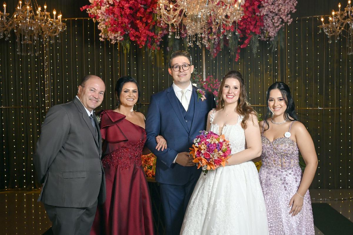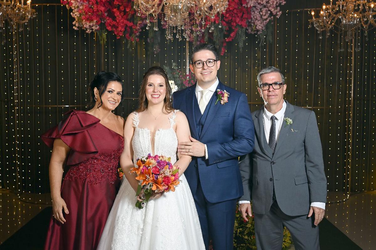 Os noivos com os pais dele, Silvania Rodrigues Naves Fernandes e Jander Barbosa Lacerda (Foto/Alysson Oliveira)