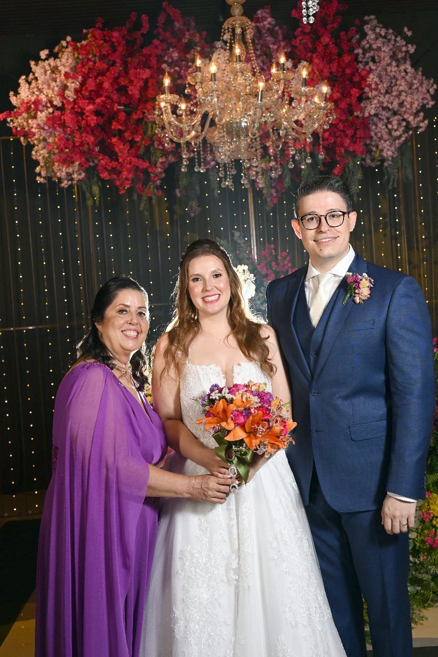 Os noivos, com a mãe dela, Marly Nangi dos Santos (Foto/Alysson Oliveira)