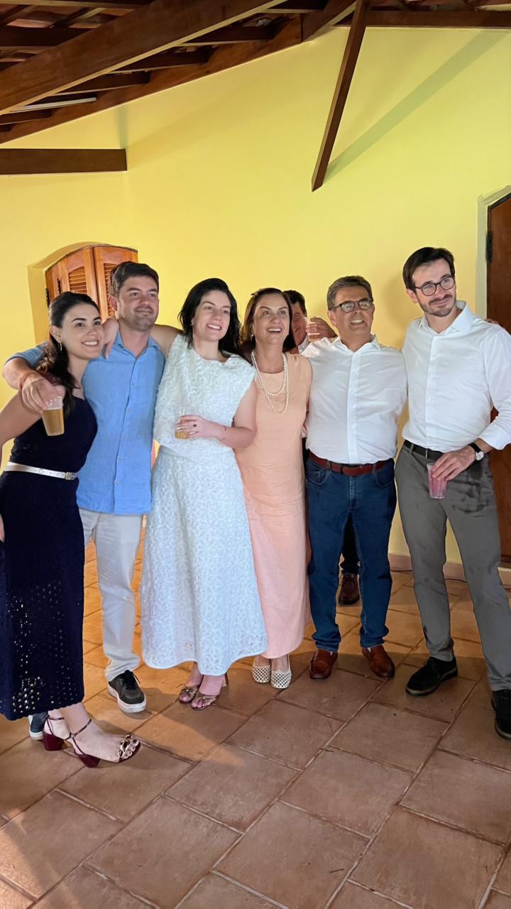 Laila Guidetti e Luis Felipe Vilela entre os familiares que foram celebrar com eles (Foto/Renata Pinheiro)