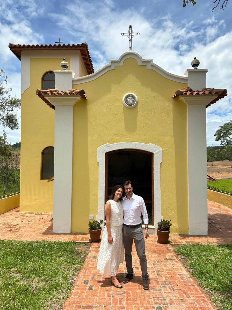 Maria Paula Molinar e Thiago Quintanilha celebraram o amor, disseram sim em uma cerimônia intimista, que marcou o casamento civil dos noivos, na Capela Santa Rosa, na Fazenda da família dos noivos no interior de Sao Paulo (Foto/Arquivo pessoal)