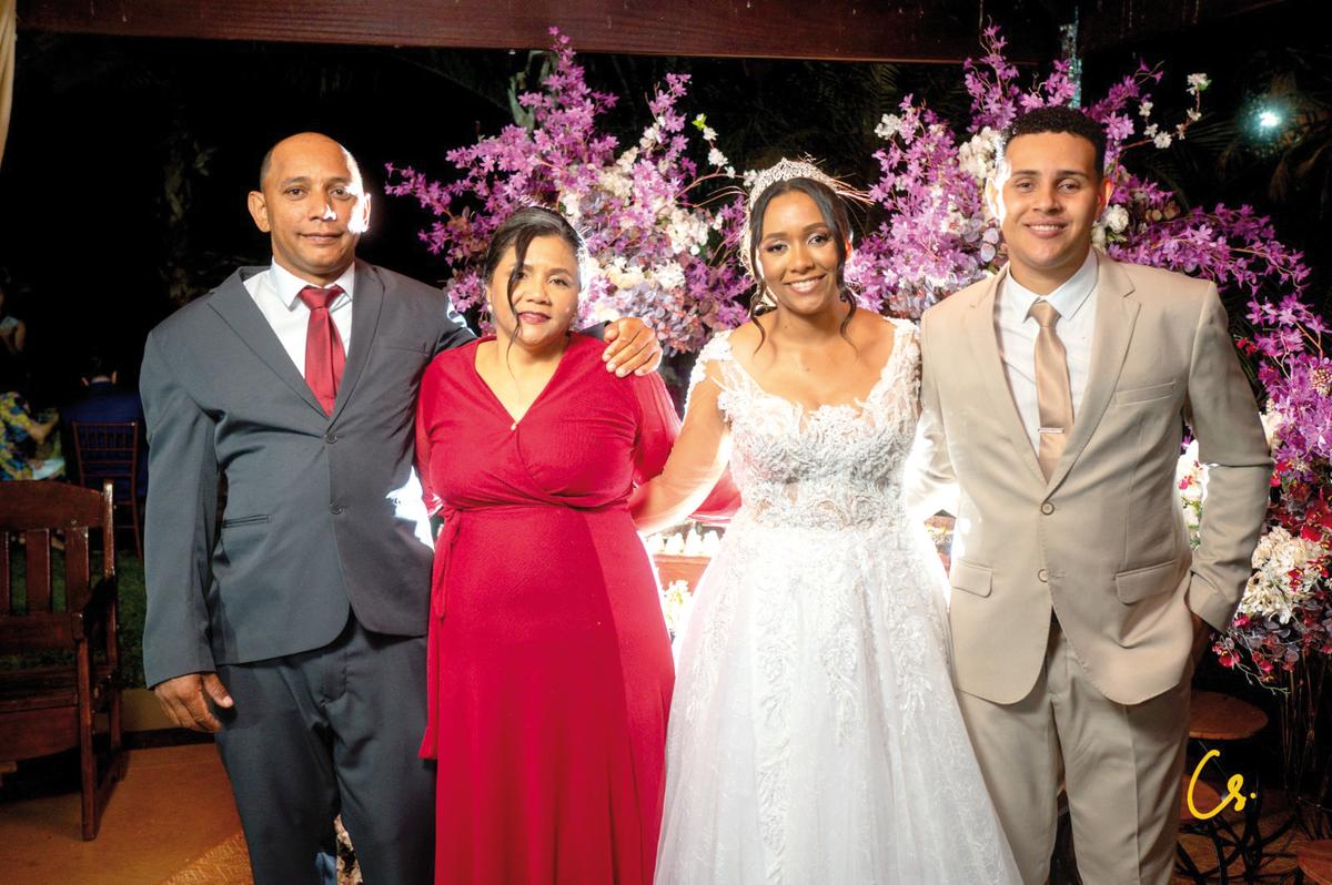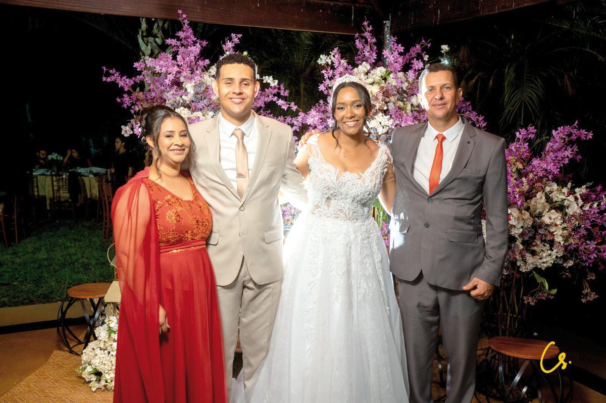 Os festejados noivos com os pais dele, Luciana Araújo Geraldo e Edson Geraldo (Foto/Cleisson Silvano)