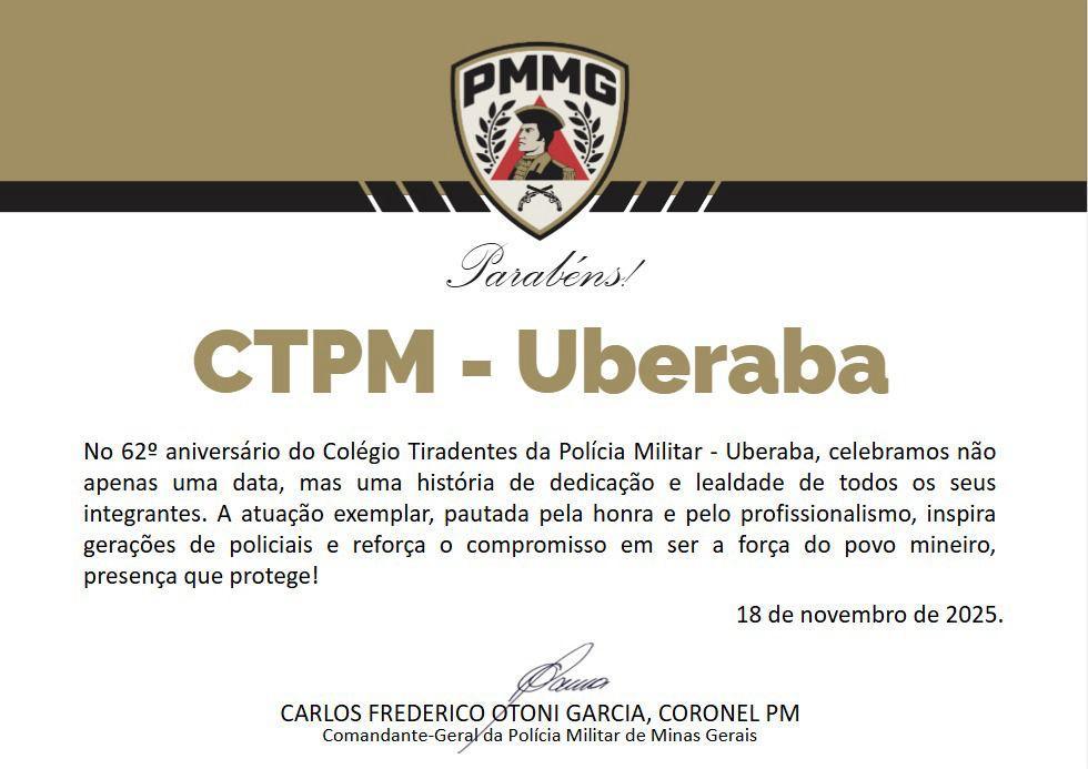 O Colégio Tiradentes da Polícia Militar (CTPM) de Minas Gerais – Unidade Uberaba, celebrou na última terça-feira (18), seus 62 anos de existência. A instituição é reconhecida pela tradição, disciplina e excelência na formação acadêmica e cidadã de milhares de jovens ao longo de mais de seis décadas.
