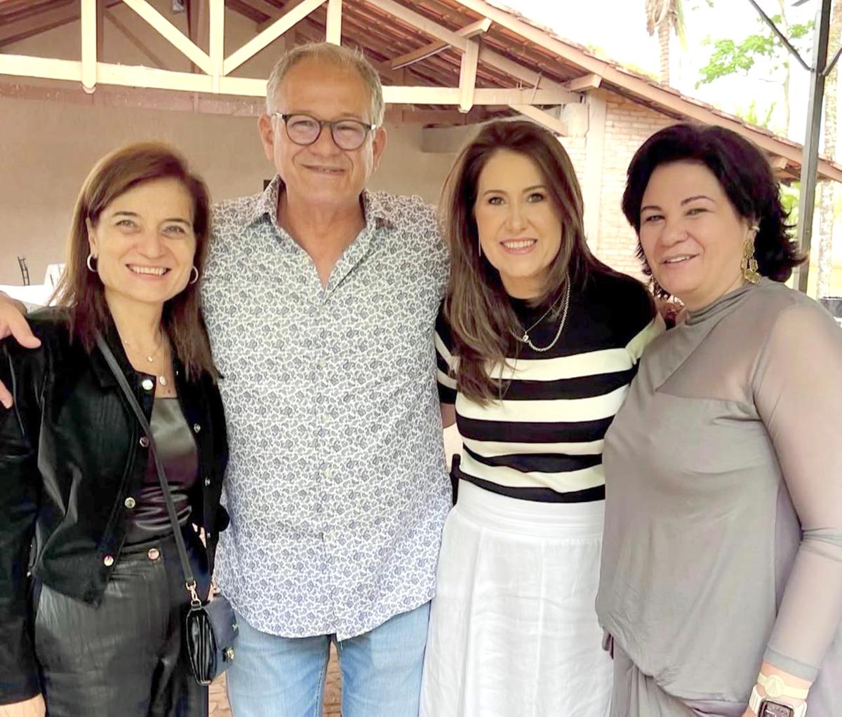 Carla Patricia Peleteiro, aniversariante da semana passada recebendo abraços de seus amigos Lélia Bruno e Luiz Carlos Souza Campos (Foto/Arquivo pessoal)