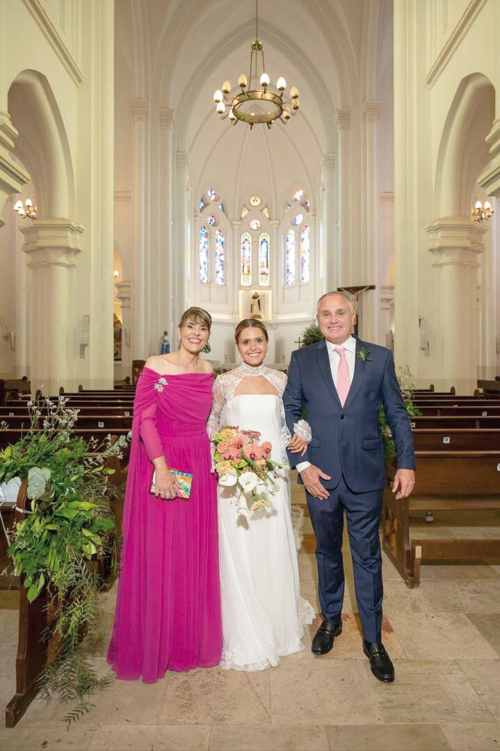 Depois de noivarem em meio a grande festança, Marcela Toubes e Marcelo Medeiros optaram por uma celebração religiosa intimista de seu casamento. Mas nem por isso – ou exatamente pelo clima privé – menos requintada. O cenário foi o mais belo templo da cidade, a Igreja São Domingos, iluminada pela luz do sol das 11 horas da manhã de sábado, 8 de novembro. No altar, ao lado dos noivos, os pais dela Maria Cecília Marquez Palmério Toubes e José Toubes Neto e os pais de Marcelo, José Wilson Medeiros e Regina Célia Vieira.