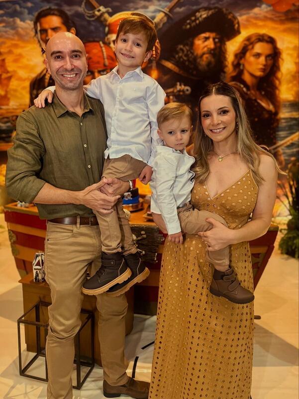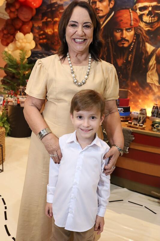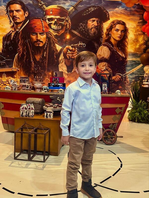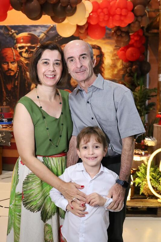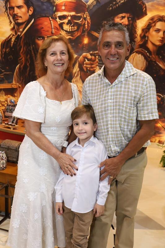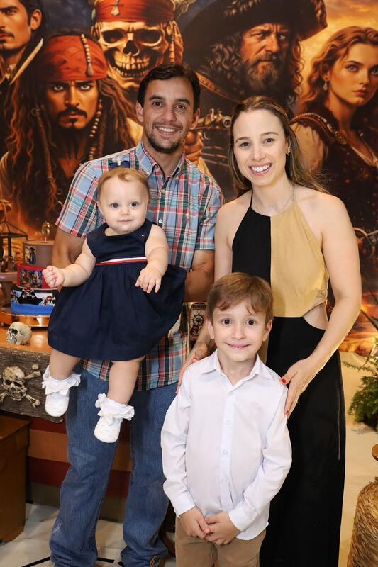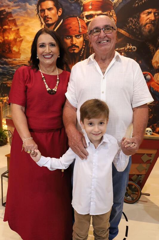Uma festa infantil com o tema Piratas do Caribe foi o concorrido evento que marcou a comemoração do aniversário de 6 anos de Heitor Guerra Mendes. Uma aventura imersiva usando madeira, preto, dourado, cenografia de navio, baús de tesouro, mapas e personagens como Jack Sparrow, e ainda tapa-olhos, moedas de ouro, caveiras... Um show!!! Para a alegria do aniversariante, do seu irmãozinho Pedro e especialmente para seus pais, os médicos Alcino Reis e Paula Guerra.