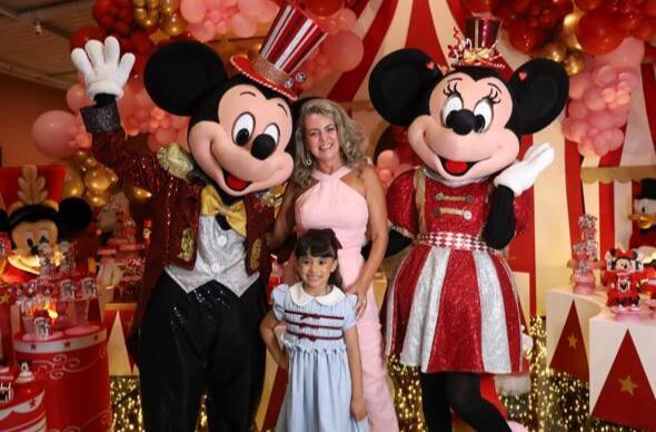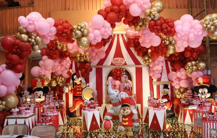 Uma decoração inspirada no circo chamou atenção pela combinação de cores vibrantes e detalhes sofisticados. O cenário contou com personagens como o Mickey Mouse, o Pato Donald e o Pateta em estilo circense, além de um arco de balões e uma tenda listrada que deram destaque ao ambiente já lindíssimo do Catavento Buffet. O resultado foi uma celebração alegre, criativa e cheia de magia, encantando todos os convidados.