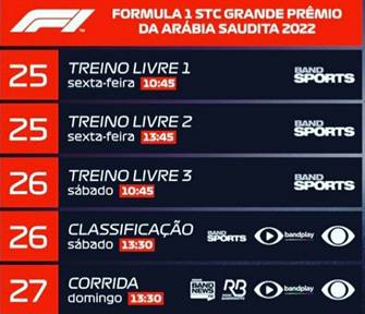 PROGRAMAÇÃO DO GP DA ARÁBIA SAUDITA