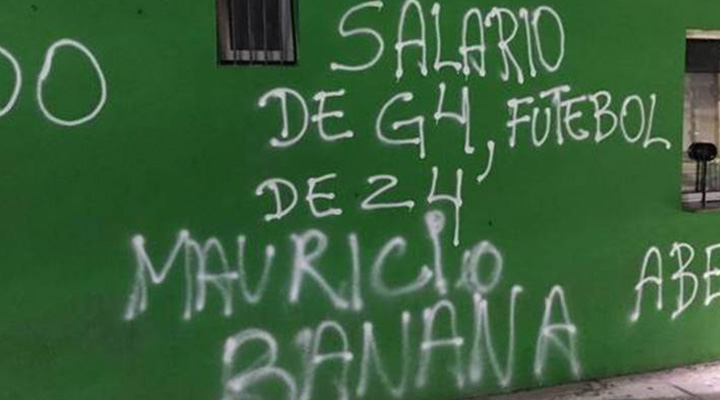 Entre as pichações escritas estão "elenco vagabundo", "salário de G-4, futebol de Z-4", "diretoria omissa" e "Mauricio Banana", esta última direcionada ao presidente Mauricio Galiotte. Até mesmo a história envolvendo o vizinho chato do técnico palmeirense foi lembrada, com a frase "Abel, seu vizinho tem razão, honre sua palavra".
