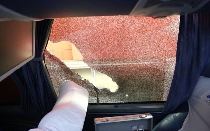 O ônibus do Grêmio foi surpreendido por torcedores do Internacional já próximo ao estádio Beira-Rio (Foto/Internet)