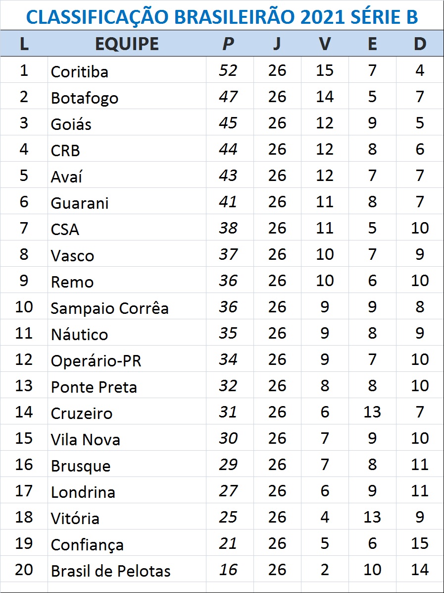 A segunda vitória seguida faz a Ponte Preta abrir seis pontos para a zona de rebaixamento, subindo para o 13.º lugar com 32 pontos. Por outro lado, a situação do Brasil-RS continua crítica Sem vencer há 14 partidas, o time gaúcho estacionou nos 16 pontos e segue na lanterna.