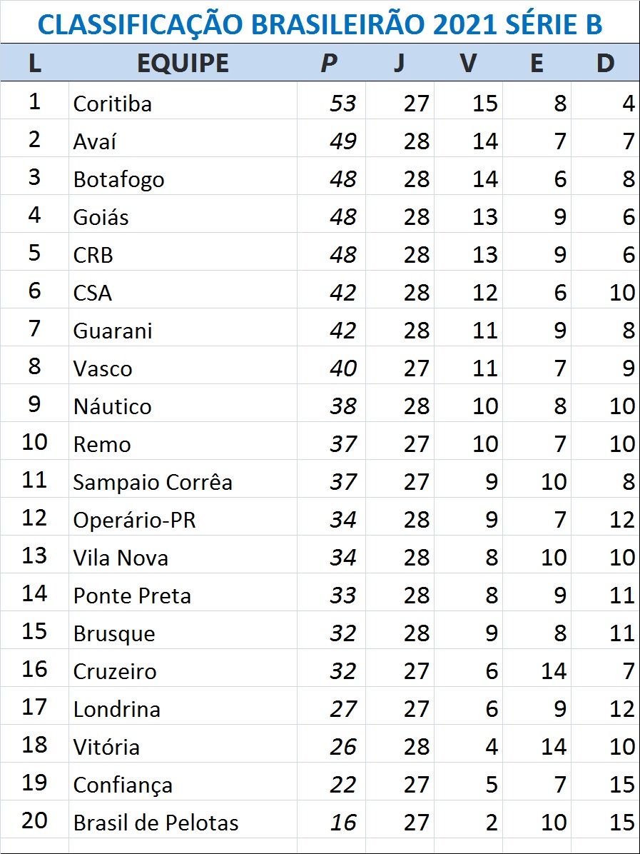 O Botafogo joga na sexta-feira diante do CRB, novamente no Rio. O Avaí encara, na terça-feira, a Ponte Preta, na Ressacada, em Florianópolis (SC). Os dois jogos são válidos pela 29ª rodada da Série B.