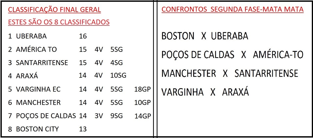 Vejam a classificação geral e a próxima rodada:
