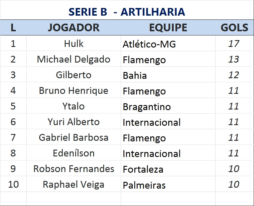 Hulk é o grande destaque do Atlético-MG. Depois de fazer dois gols contra o Fluminense, ele se tornou no novo artilheiro da Série A com 17 gols, 4 a mais que Michel do Flamengo HULK FAZ DOIS, ATLÉTICO-MG BATE FLUMINENSE EM CASA E FICA MAIS PERTO DO TÍTULO
