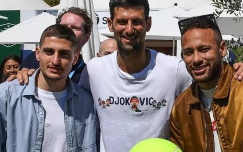Prestes a estrear no Masters 1000 de Montecarlo, após quase dois meses sem competir, Novak Djokovic se encontrou com Neymar nesta segunda-feira, no Monte Carlo Country Club, onde o torneio será disputado. O tenista número 1 do mundo bateu embaixadinhas ao lado do craque brasileiro do PSG e do meio-campista italiano Marco Verratti, também jogador do time parisiense.