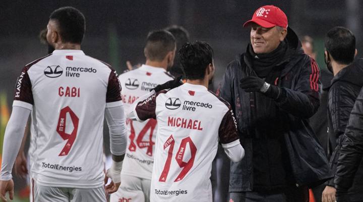 FLAMENGO - Diego Alves; Isla (Matheuzinho), Gustavo Henrique, Léo Pereira e Filipe Luís; Gomes, Thiago Maia (Piris da Motta), Everton Ribeiro (Pedro) e Arrascaeta (Bruno Viana); Gabriel e Michael (Vitinho). Técnic Renato Gaúcho.