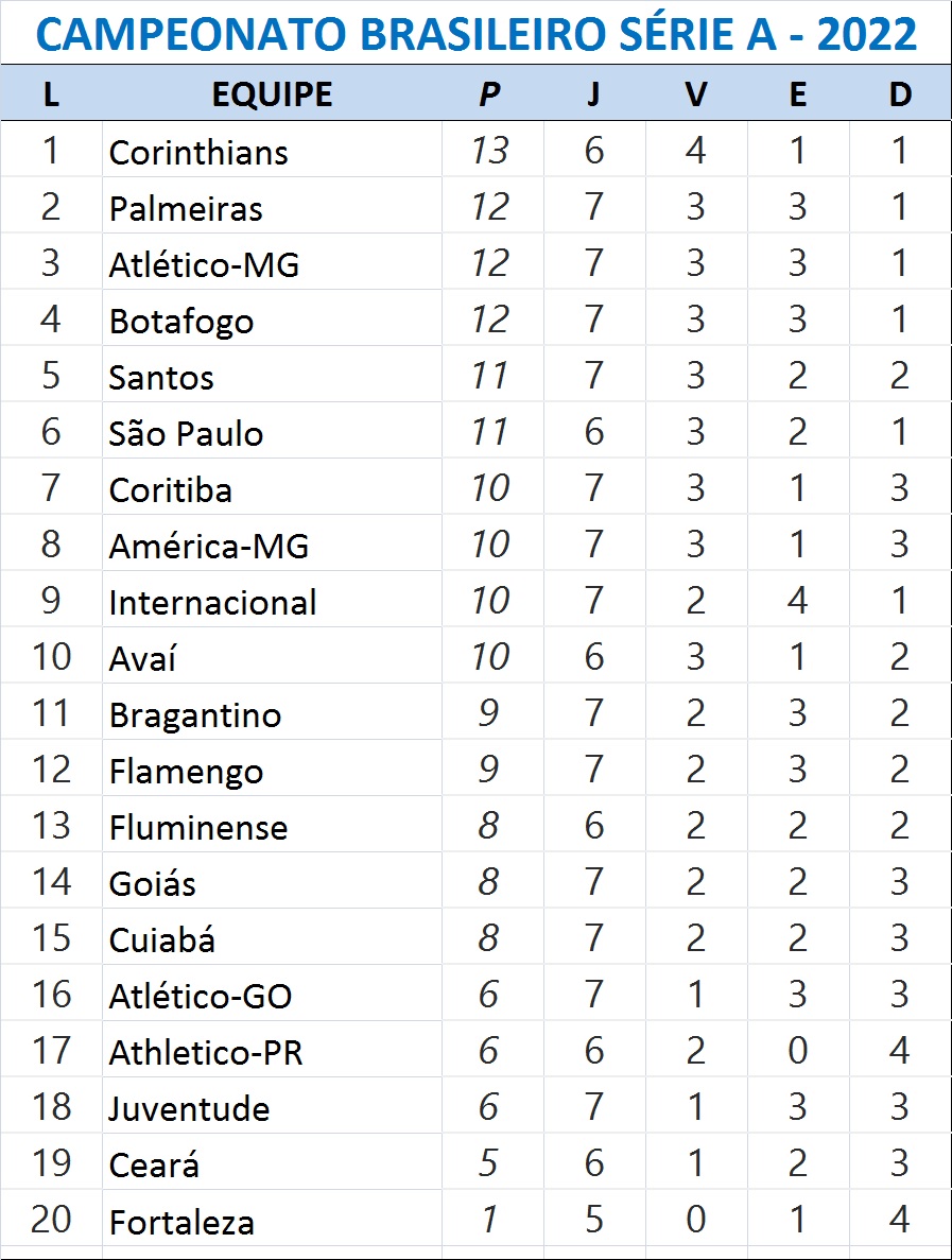 A equipe da Vila Belmiro, que vinha de derrota para o Goiás e agora acumula um tropeço diante do Ceará, tem 11 pontos na classificação, enquanto o Ceará segue na zona do rebaixamento ocupando a vice-lanterna com cinco pontos.