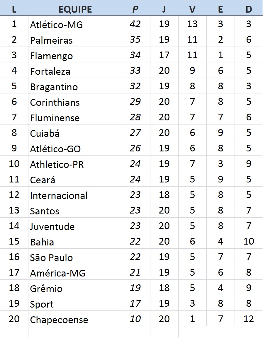 Na 21ª rodada, o Fortaleza vai enfrentar o Internacional, fora de casa, no sábado, dia 18, mesma data em que o Atlético-MG vai receber o Sport, no Mineirão, em Belo Horizonte.