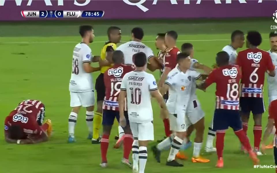 Fluminense jogou muito mal. Entrou jogando atrás e não suportou a ofensiva do Júnior de Barranquilla e tomou um chocolate ás vésperas da Páscoa | Fot Reprodução TV