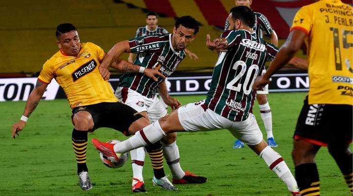 Como empatou por 2 a 2 o jogo de ida no Maracanã, semana passada, o Fluminense entrou em campo com a obrigação de vencer ou empatar por três ou mais gols. Mandou no primeiro tempo, mas não foi efetivo o suficiente para incomodar o rival e sair de campo com a vitória. Na etapa final, Roger Machado demorou demais para mexer e a equipe do Equador jogou à vontade até ir às redes. O Flu arrancou o empate em um lance fortuito, uma penalidade cometida em Luccas Claro, mas já não havia mais tempo Ao menos, Fred converteu a cobrança, chegou à marca de 25 gols em Libertadores e se tornou ao lado de Palhinha o segundo maior artilheiro brasileiro da competição. Os dois estão atrás somente de Luizão (29).