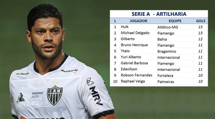 Hulk aumentou a distancia para Michael do Flamengo. O jogador do Galo agora tem 15 gols marcados contra 13 do atacante rubro-negro