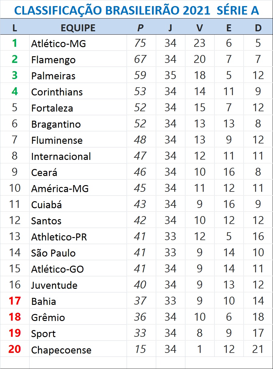 O Atlético manteve a diferença de oito pontos para o Flamengo, já que o rival também empatou, diante do Grêmio, em Porto Alegre Os mineiros somam 75 e os cariocas, 67. A conquista está cada dia mais próxima do líder, que encara no domingo o Fluminense, no Mineirão. O Palmeiras esquece o Brasileirão por ora e se concentra no jogo mais importante do ano. No sábado, às 17h, encara o Flamengo em Montevidéu, no Uruguai, atrás de seu terceiro título continental.