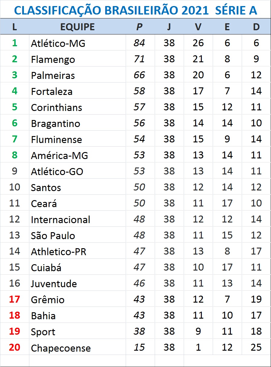 O Grêmio está rebaixado pela terceira vez para a Série B. O tricolor gaúcho derrotou o Atlético-MG, por 4 a 3, nesta quinta-feira, na Arena, em Porto Alegre, em duelo válido pela 38ª e última rodada do Campeonato Brasileiro, mas terminou na 17ª colocação, com 43 pontos. As derrotas de Bahia e Juventude, que eram necessárias para livrar a equipe gremista do rebaixamento, não ocorreram. Com isso, o fracasso de 1991 e 2004 se repete para o lado azul do Rio Grande do Sul.