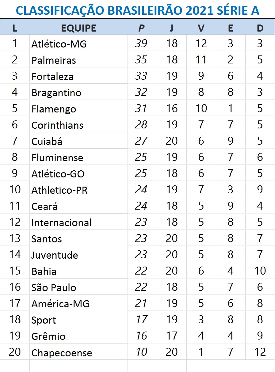O time alviverde não joga desde a vitória sobre o Athletico-PR, no dia 28 de agosto, por 2 a 1. É o vice-líder do Brasileirão, com 35 pontos, quatro atrás do líder Atlético-MG.
