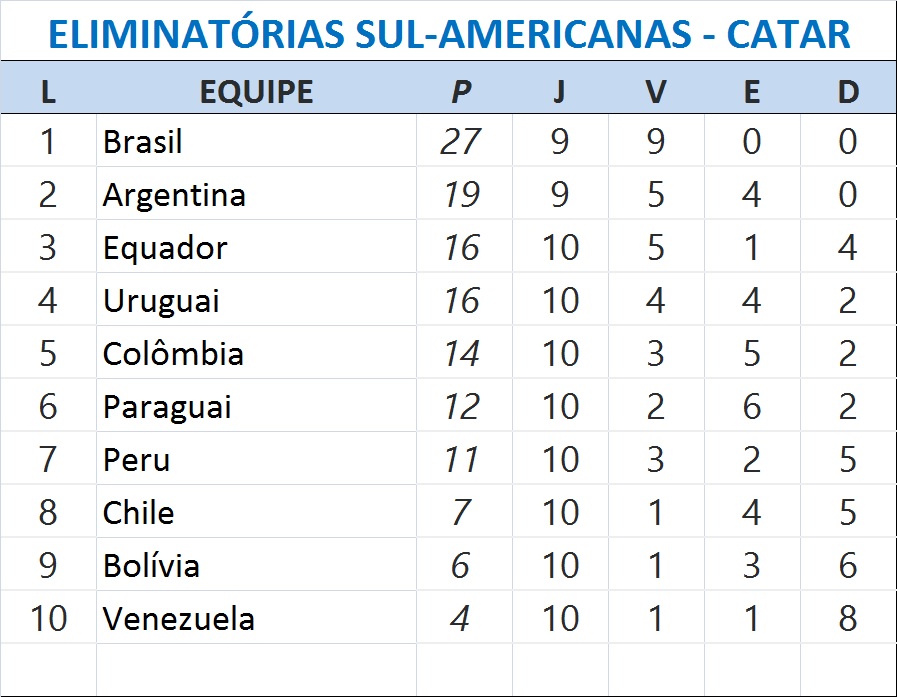 Com o resultado, o Uruguai se manteve na terceira posição, agora com 16 pontos. Um placar que preocupa a seleção celeste na briga por vaga direta no Mundial. Já a Colômbia é a quarta colocada, com 14 pontos, outra seleção que também procura a regularidade.